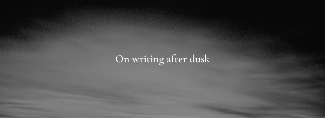 It’s also, if you hadn’t guessed, what inspired the name of this newsletter. Almost all of the ideas that have been rattling around my head are released onto paper after dusk.
